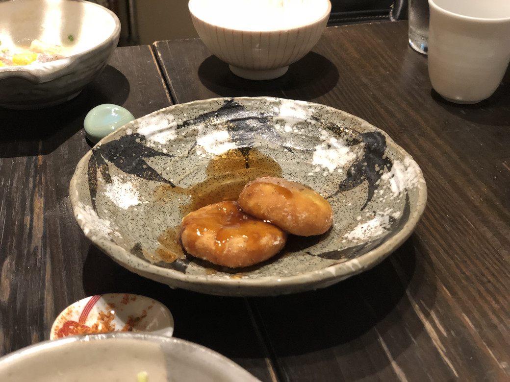 お酒を追加。雨後の月・辛口純米に長龍・四季咲です。こう、きゅっと締める感じのセレクトですね。もちろんお酒のオーダーは大半がこちらの気分を読み取った、店員さんのセレクトです。いやー、いいわー。